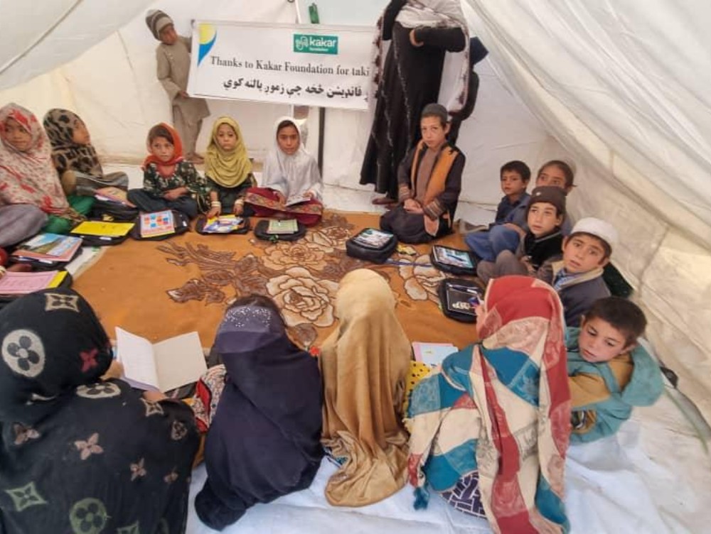 In Aino Maina lernen 50 Rückkehrerkinder im Zelt – mit Büchern, Stiften und engagierter Lehrkraft.